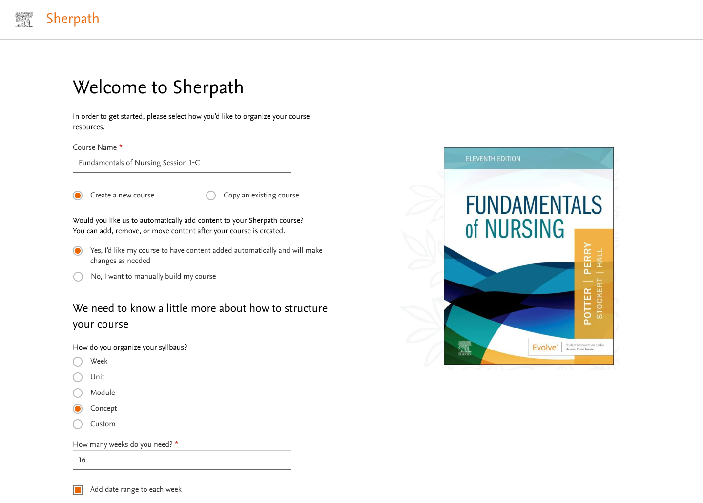 Sherpath is an online learning platform for Nursing school produced by Elsevier. Instructors can assign course materials, lessons, and quizzes to students to help them effectively prepare for a Nursing career.
